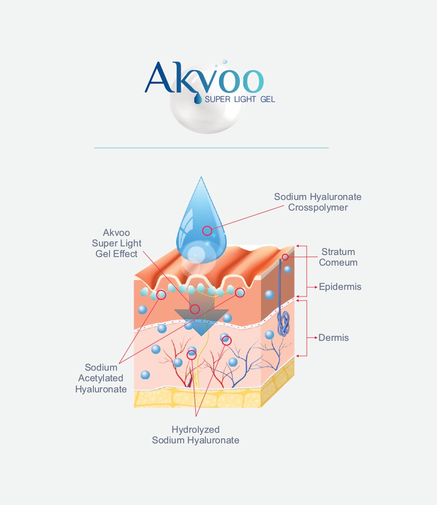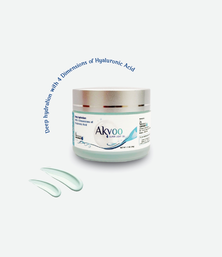 AKVOO Super Light Gel is a hydrating, lightweight gel enriched with multiple forms of hyaluronic acid, niacinamide, and antioxidants. It deeply moisturizes, improves skin elasticity, brightens, and leaves skin soft, smooth, and radiant without any greasy residue.
