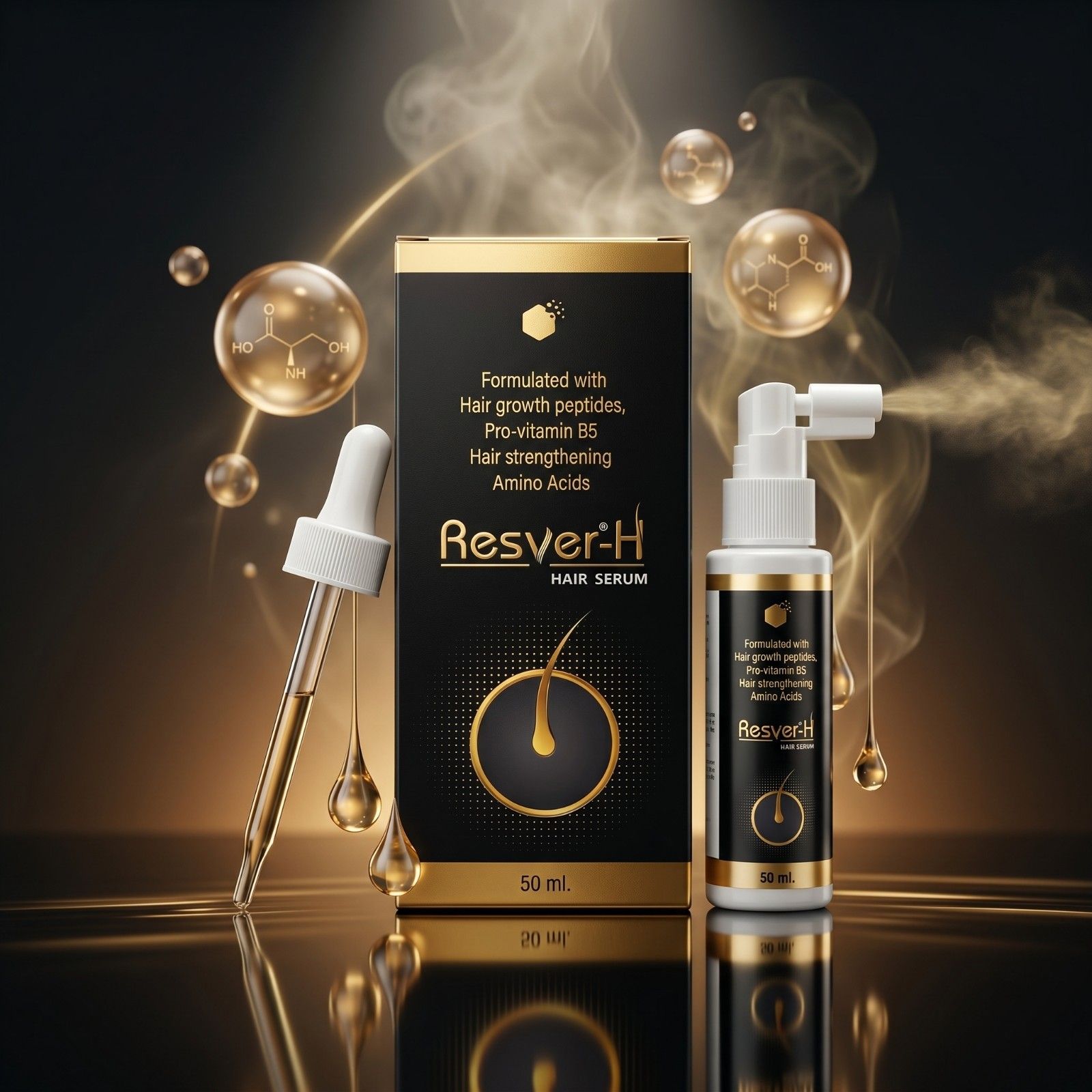 Resver-HS Hair Serum combines the power of Biotinyl Tripeptide and Apigenin to strengthen hair roots and stimulate growth. With Oleanolic Acid, Hydrogenated Castor Oil, Egg Protein, and Vitamin B5, it nourishes the scalp, reduces hair fall, and restores natural shine. Perfect for thinning or weak hair, leaving it healthy and revitalized.