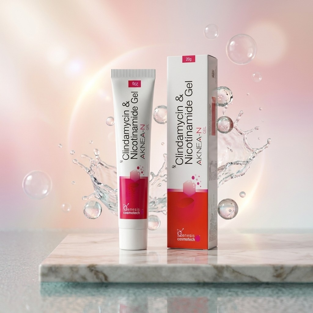 AKNEA-N combines Clindamycin Phosphate 1% with Niacinamide and Allantoin to target acne-causing bacteria, reduce inflammation, fade marks, and soothe irritated skin for clearer, calmer, healthier-looking skin.