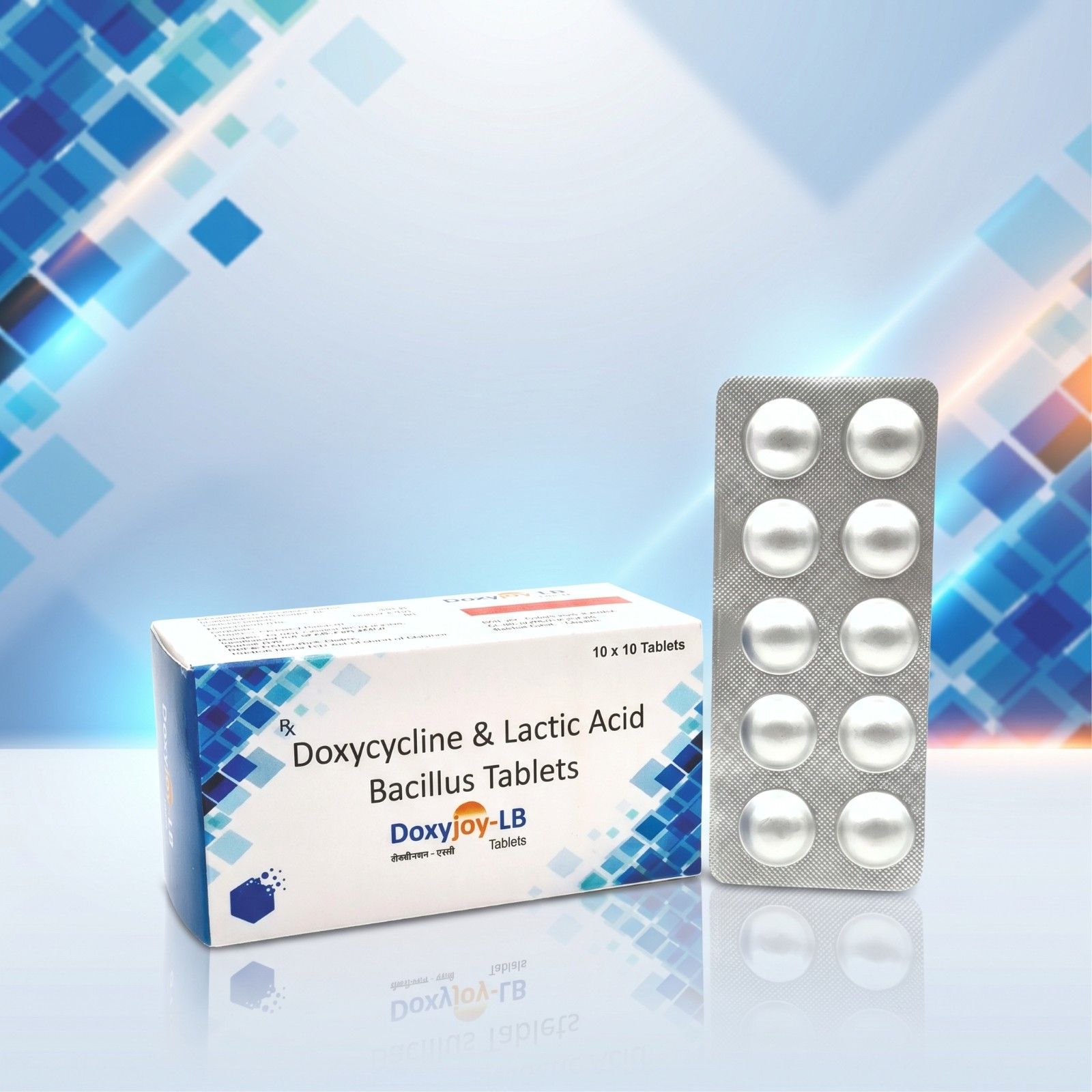 DOXYJOY LB combines Doxycycline 100 mg with Lactic Acid Bacillus 5 Billion Spores to deliver strong antibacterial action while maintaining gut flora. It helps manage bacterial infections effectively, reduces gastrointestinal discomfort, and supports faster, balanced recovery with enhanced patient tolerance and improved clinical outcomes.