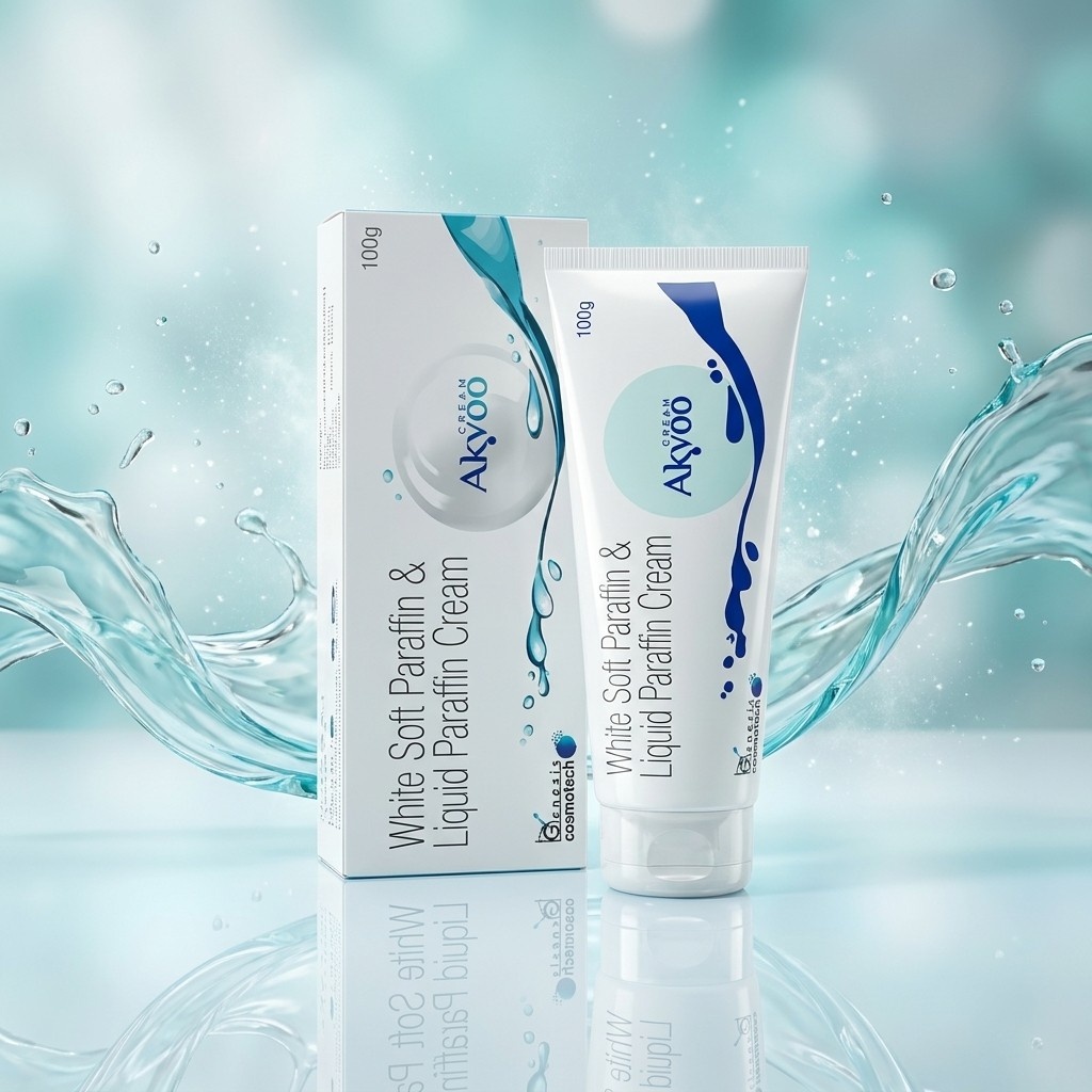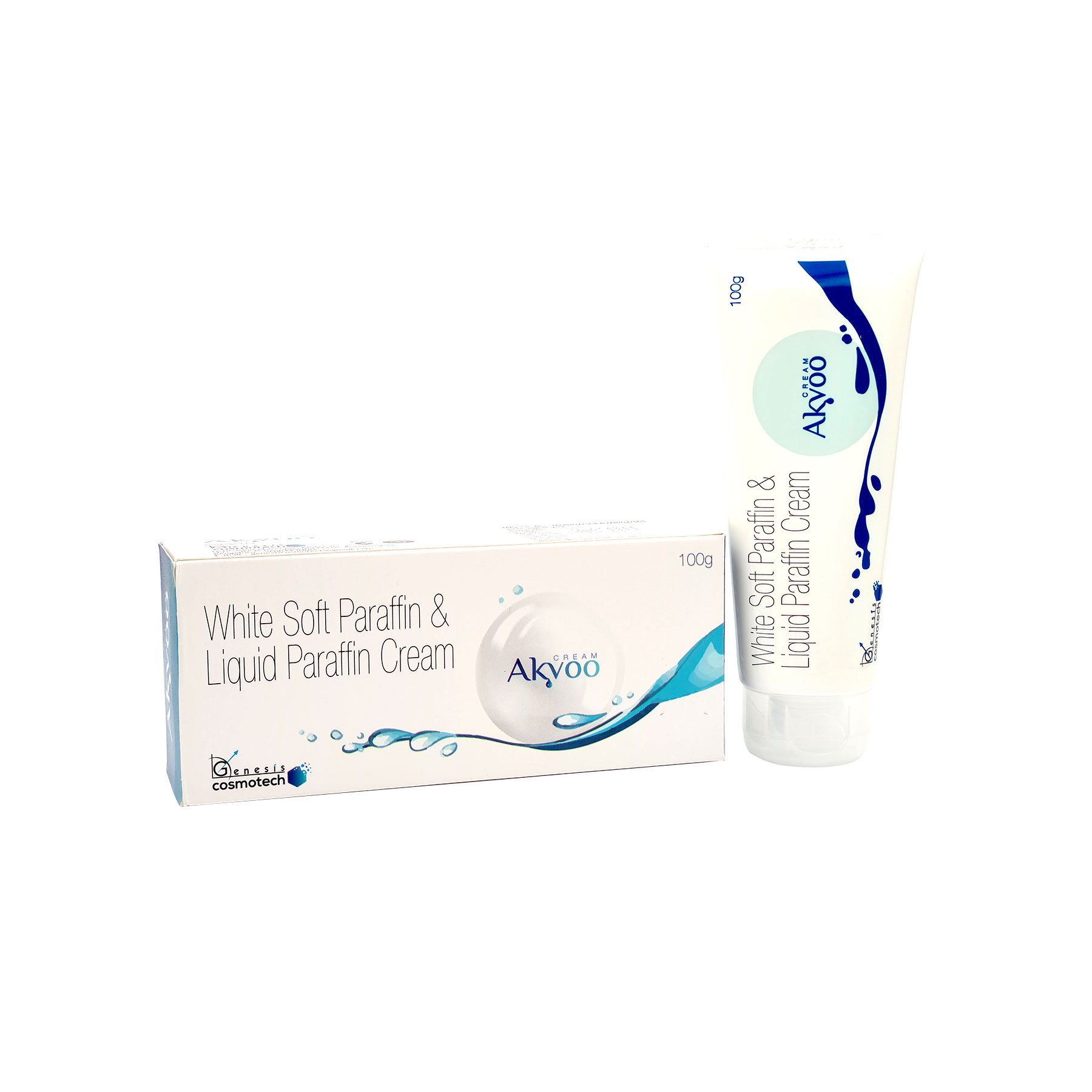 AKVOO CREAM delivers deep hydration with White Soft Paraffin 13.2% and Liquid Paraffin 10.2%, forming a protective barrier to lock in moisture. It soothes dryness, softens rough skin, and restores smoothness, making it ideal for daily nourishment and long-lasting comfort.